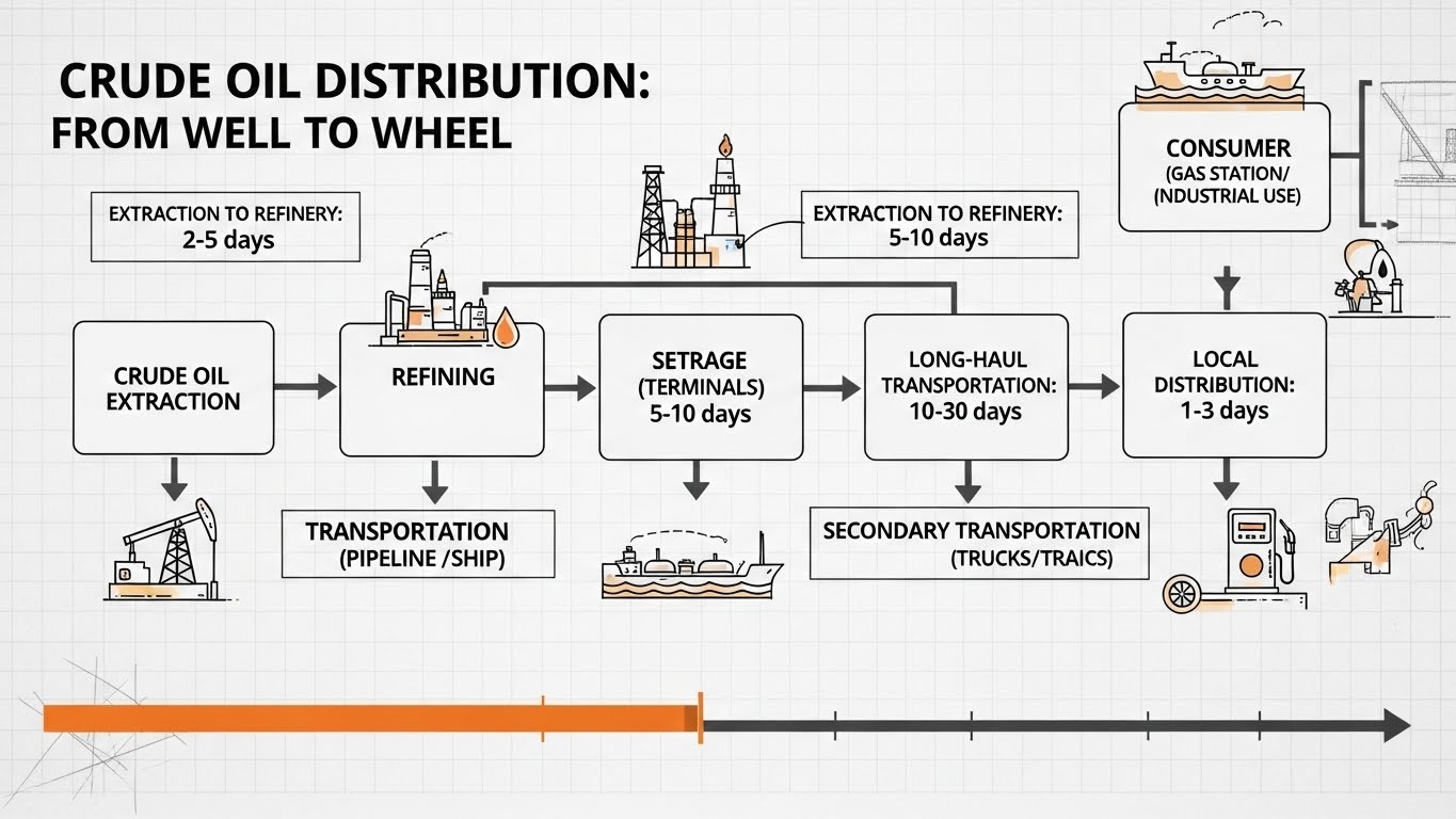 산유국 → 원유 수출 → 국내 정유사 → 정제 → 주유소 공급 → 소비자