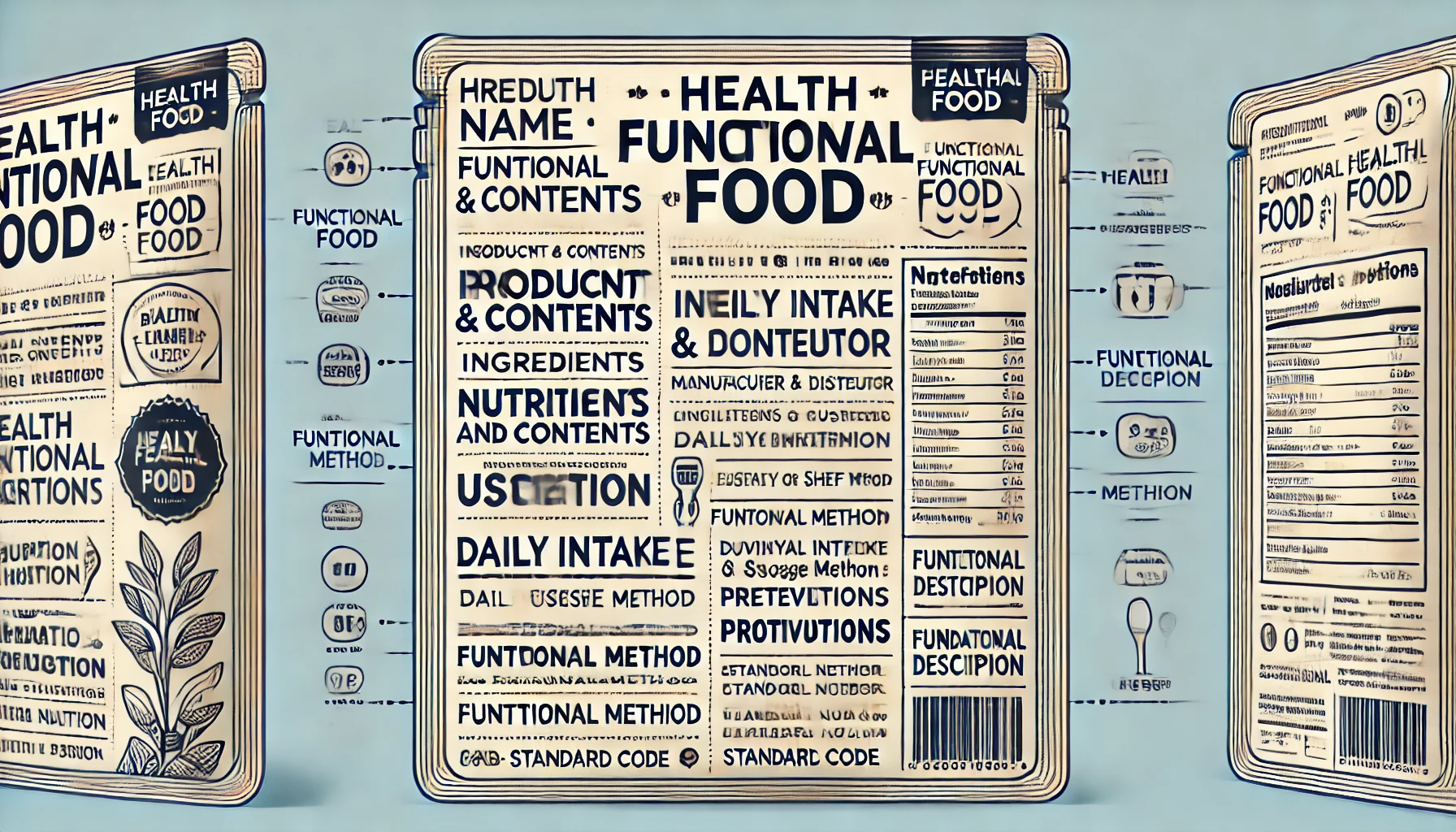 - "건강기능식품"이라는 문구 또는 이를 나타내는 도안을 포함해야 합니다.