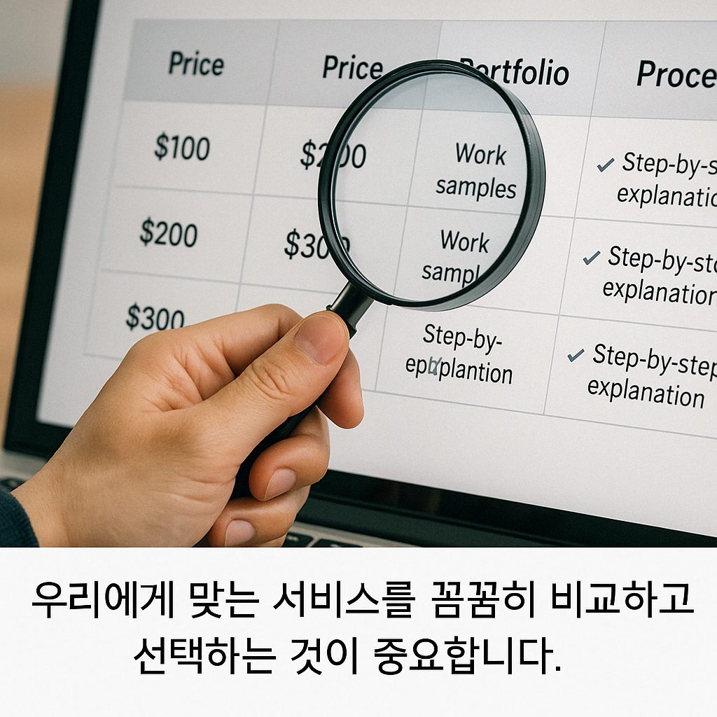 - 소통 및 수정 정책 확인: 원활한 소통이 가능한지, 원하는 방향으로 수정 요청이 가능한지 등을 미리 확인해야 만족도를 높일 수 있어요.